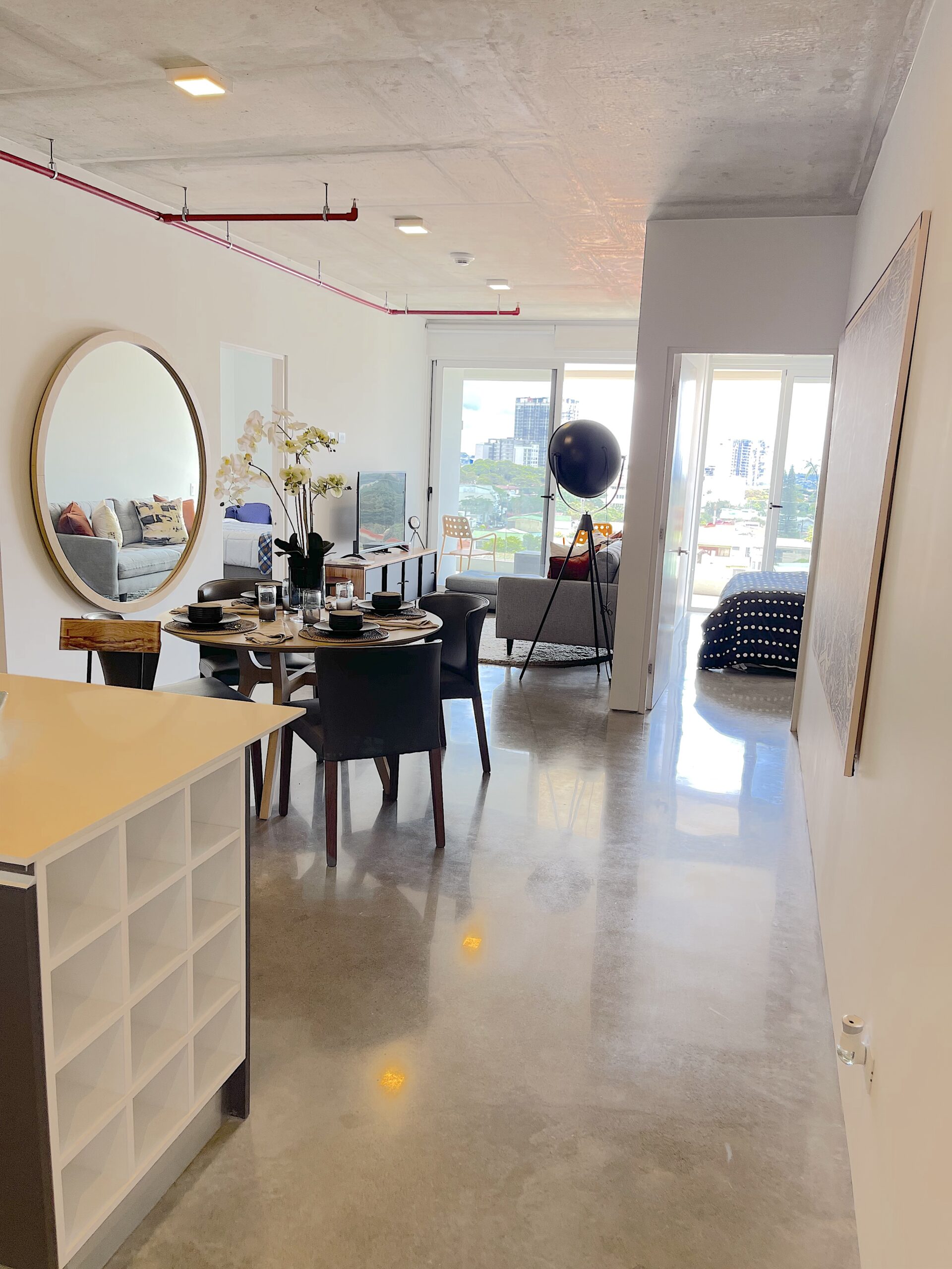 Un edificio de cuatro pisos con un hermoso paisaje y…
